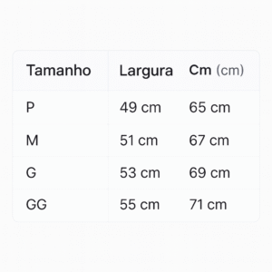 Em produtos de algodão, o encolhimento pode ocorrer entre 3% a 5% em relação às medidas informadas na tabela.