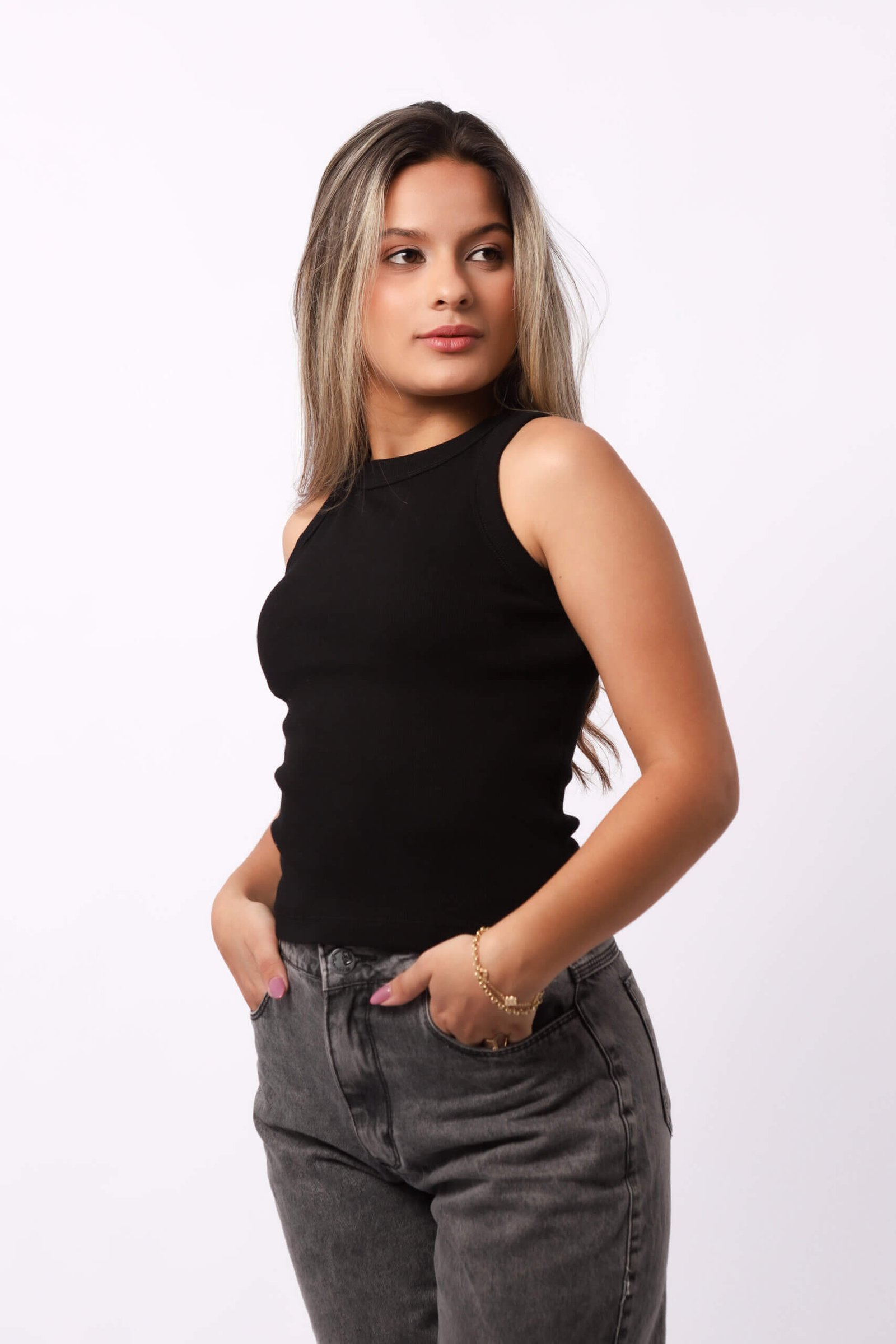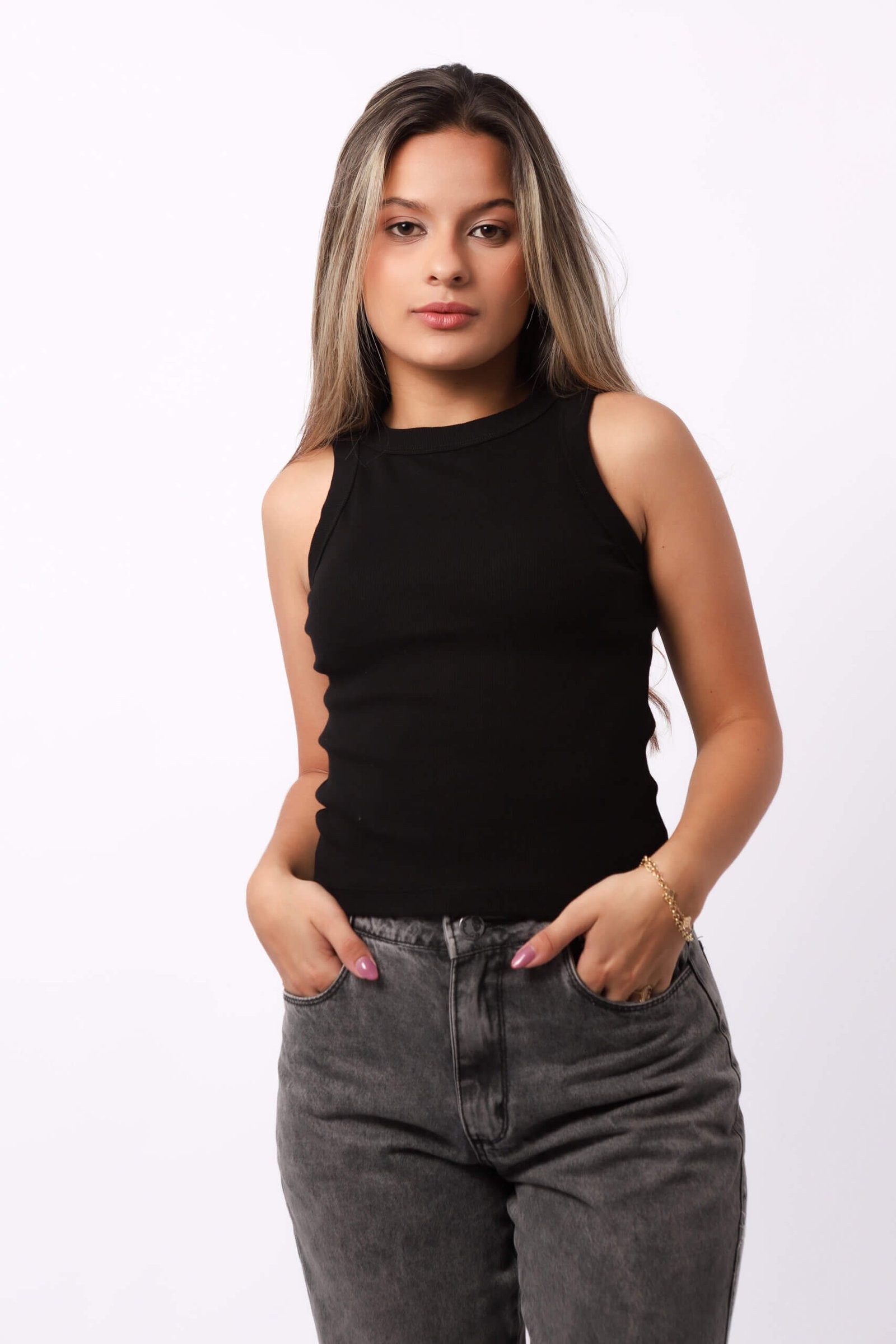 A Regata Canelada Feminina da Vila Urbana une estilo e conforto em uma peça essencial e sofisticada. Versátil e atemporal, é ideal para compor produções minimalistas com elegância natural.